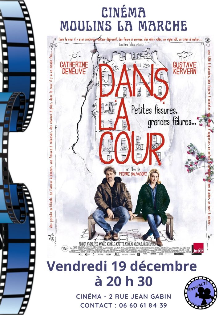 “Dans la cour ” Séance à 20h30 Salle de cinéma 2 rue Jean Gabin, Moulins-la-Marche Entrée 3 euros vendredi 19 Décembre 2025 : “Dans la cour sorti en 2014 avec…