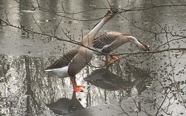 Oies sur un étang glacé à La Queurie - février 2021 - JM Beaud