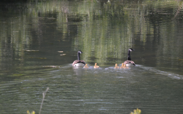 la petite famille des oies bernaches en apprentissage - mai 2020 - JM Beaud