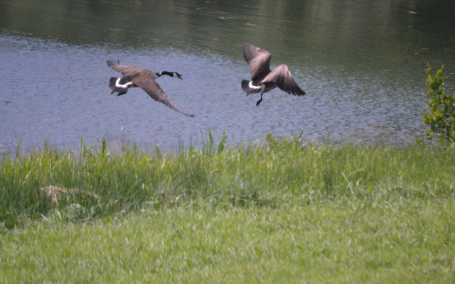 Vols d'oies bernaches sur un étang à la Queurie - Mai 2020 - JM Beaud